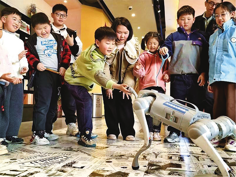 3月22日,肥东县新华书店与科大讯飞联合开展科普推广活动,通过寓教于乐的方式,让孩子们近距离体验科技的魅力,激发孩子们学习科学知识的兴趣。图为在肥东县新华书店,小读者与智能机器狗进行互动游戏。