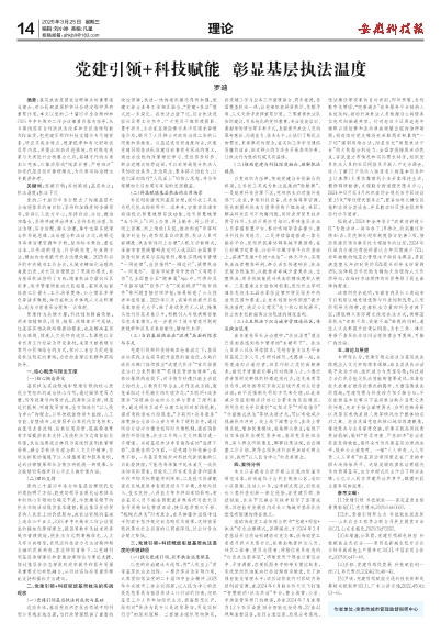 党的二十届四中全会给基层治理现代化问题指明了方向,把党的领导在现代治理体系中的核心引领地位确定下来,给党建引领下的执法实践活动提供基本遵循,提出基层执法要坚持人民至上的价值取向,在依法依规的基础上追求公平正义,2025年中央城市工作会议提出的精细化管理理念,提倡用数字化技术改善城市管理效能,使执法方式朝着精准化、人文关怀方向转变,表现出科技助力与法治精神相交融的发展趋向,在这样的背景下,以党建引领基层治理理论和智慧治理理论为理论支撑,探讨基层执法怎样做到效率提升和服务质量双重要求的有机融合,从而给实际应用提供理论支持和操作方法建议。