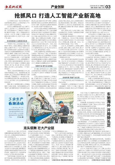 优化营商服务,为产品出海保驾护航。“我们帮奇瑞在一个月内完成其子公司在我行阿姆斯特丹分行的开户,以此作为欧洲片区资金业务支点,助力企业顺利拓展欧洲市场。”工商银行安徽省分行相关负责人介绍,安徽自由贸易试验区芜湖片区推出海外子公司跨境融资服务新模式,联合境内银行直接对海外子公司授信,破解企业“出海”融资难题,为车企布局全球提供了充足的金融底气。相关经验获评商务部自贸试验区“最佳实践案例”。