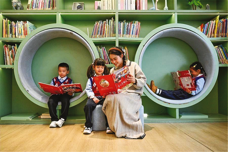 3月31日,在合肥市悦书房名鼎书院,合肥市长江路幼儿园教育集团天成分园的小朋友们正在老师的指导下阅读绘本。当日,该幼儿园组织开展“书香伴花朵,师生共读”主题活动,引导幼儿“多读书、读好书、好读书”,让孩子们从小养成良好的阅读习惯。